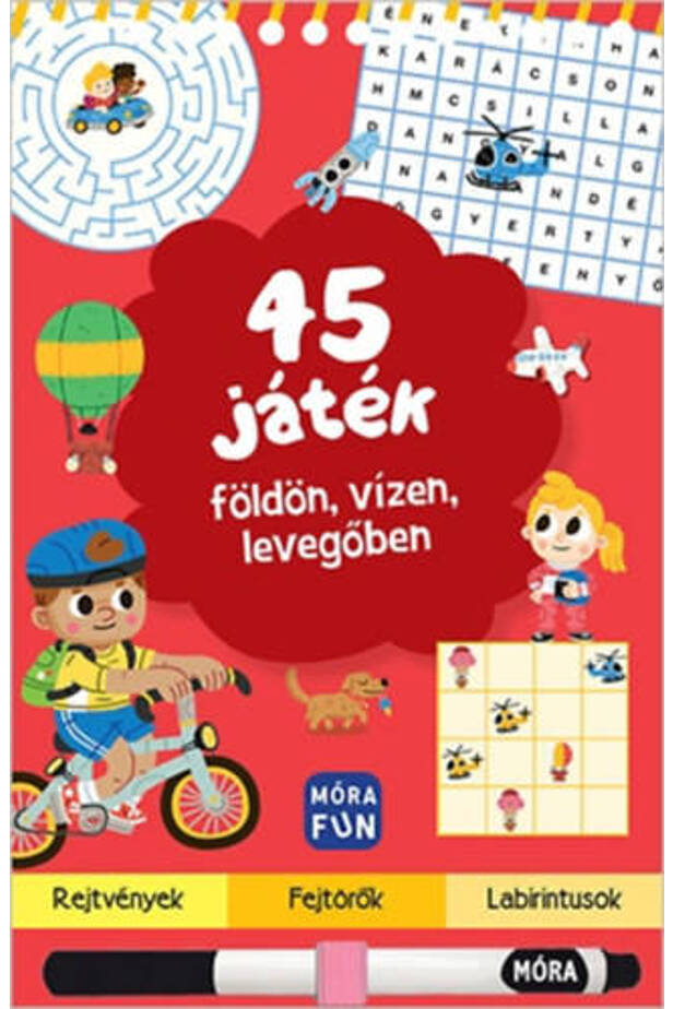 45 feladat, egy letörölhető toll, egy kisméretű füzet: indulhat a játék! Bárhol! Bármikor!