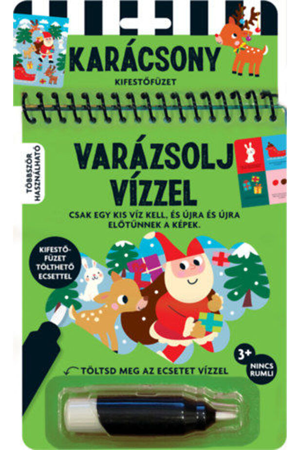 Töltsd meg vízzel a tollat, és hívd elő a képek elemeit, így lesznek teljesek az oldalak, és megválaszolhatod a füzet kérdéseit. Ha a foltok megszáradnak, újra fehérek lesznek, és kezdheted elölről, amikor csak kedved tartja.